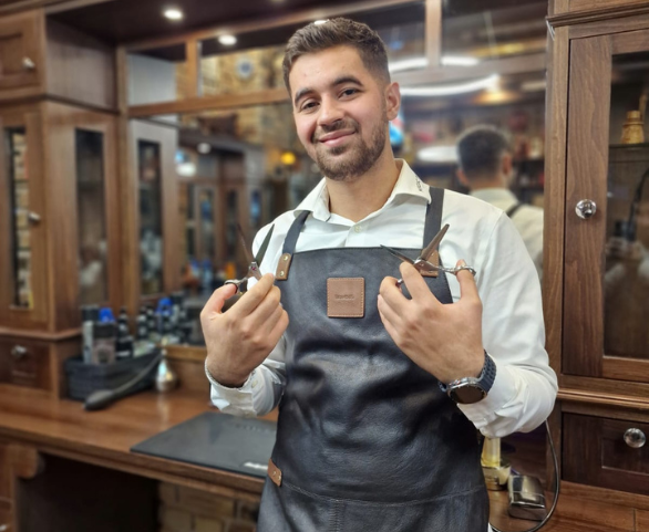 Han har mange års erfaring med klassisk barbering, skarpe fades og præcist skægdesign.